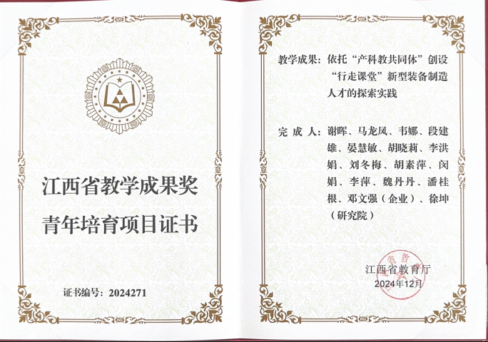 2026年江西省教学成果奖(职业教育类)实体化运行、场景化育人:产科教一体培养智造工匠的探索实践教学成果支撑材料 成果完成人: 谢.. 【查看详情】