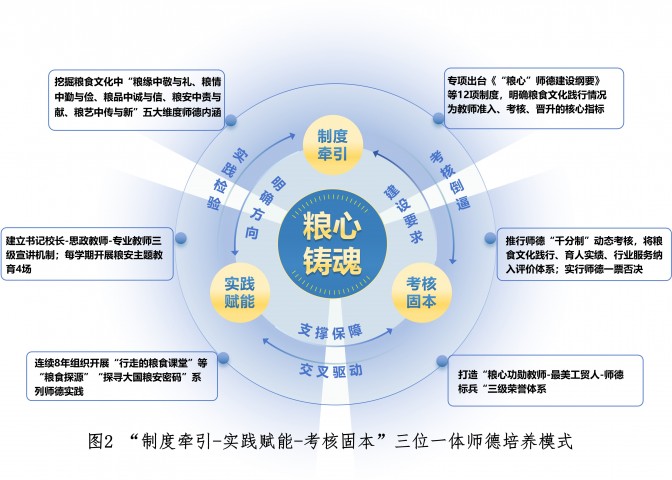 (1)“粮心”铸魂,构建“制度牵引—实践赋能—考核固本”三位一体师德培养模式